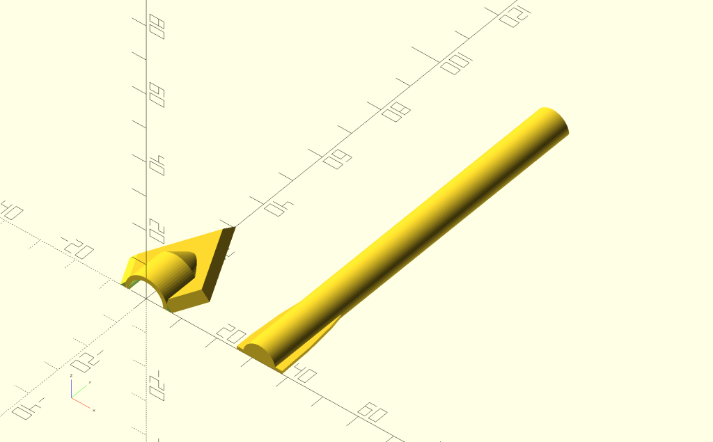Дръжката в оригиналния модел не може да се принтира добре в единия си край. Моделирахме собствена версия на дръжката на камата, за да достигнем търсеното от клиента качество на финалния продукт. Качихме модела в makerworld и по-долу сме добавили линк към него.