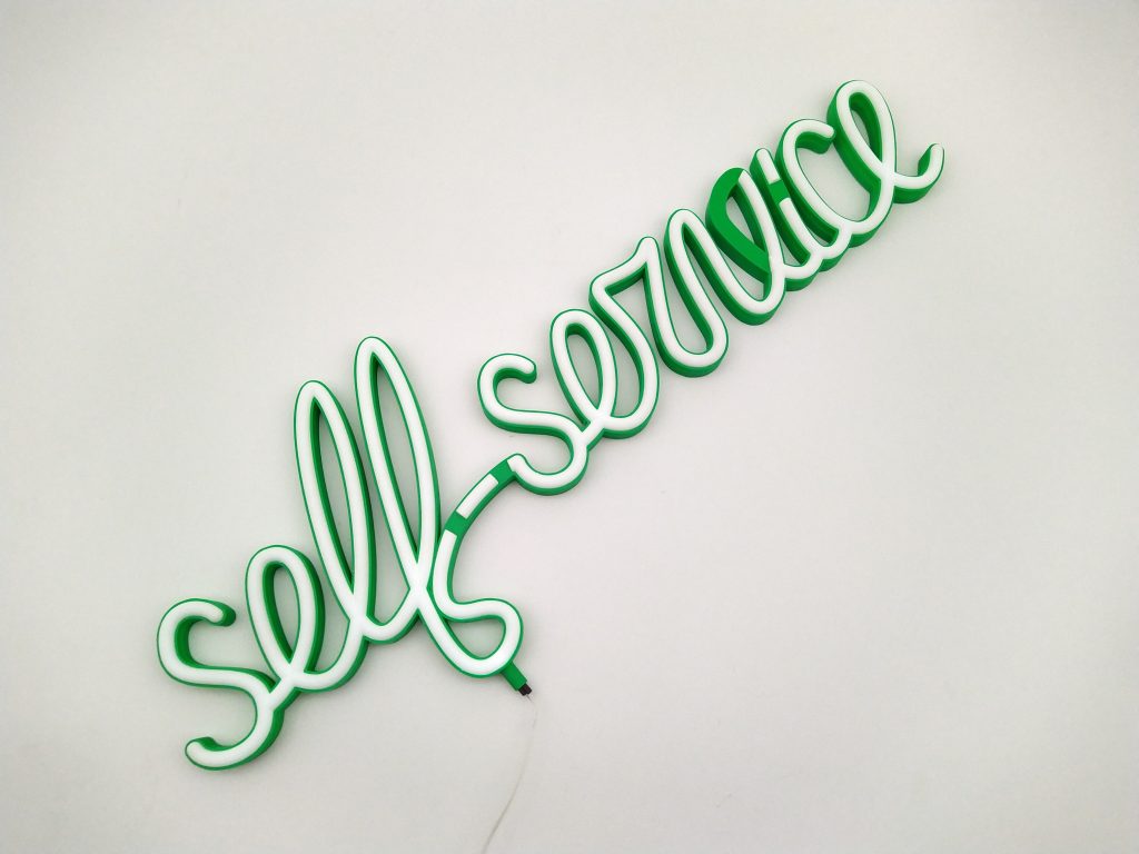 Дизайн и изработка на неонов надпис за заведение на самообслужване.