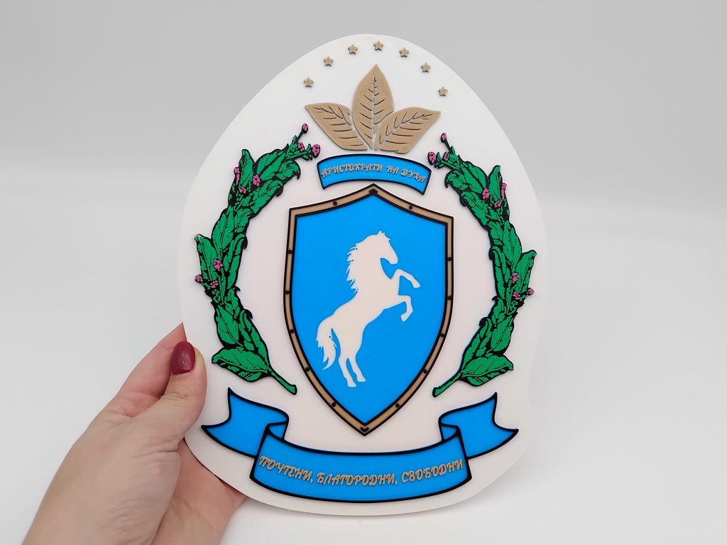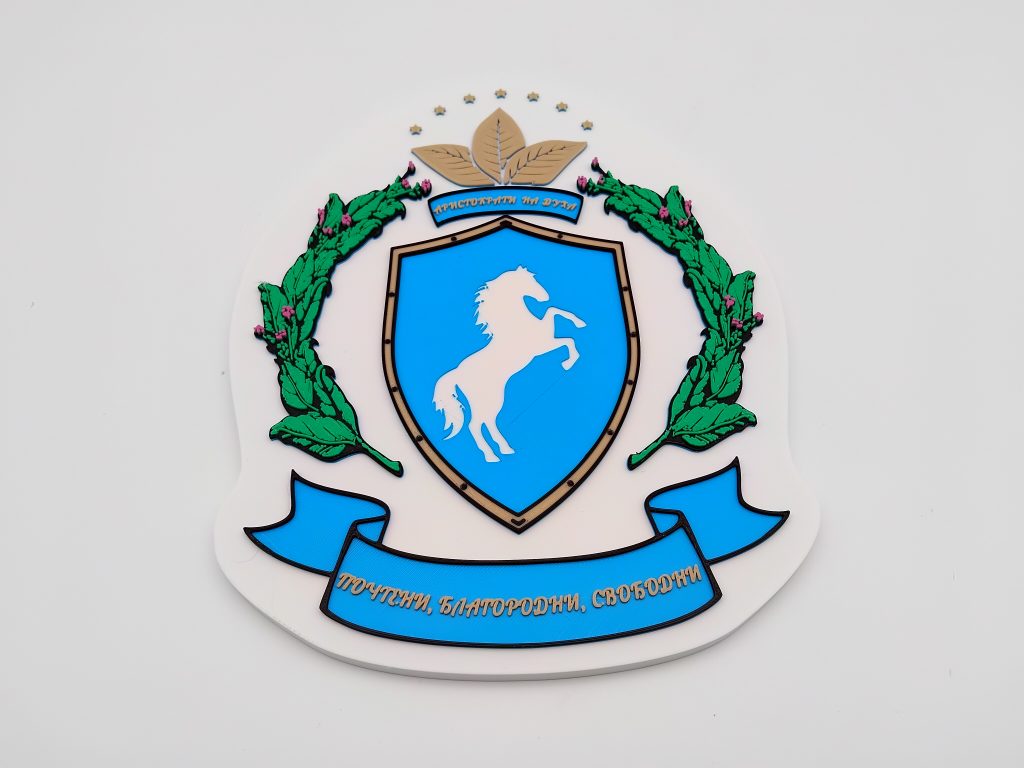 Изработка на плочка с герб за окачване на стена. Векторен дизайн от клиента. Моделиране и принтиране от нас.