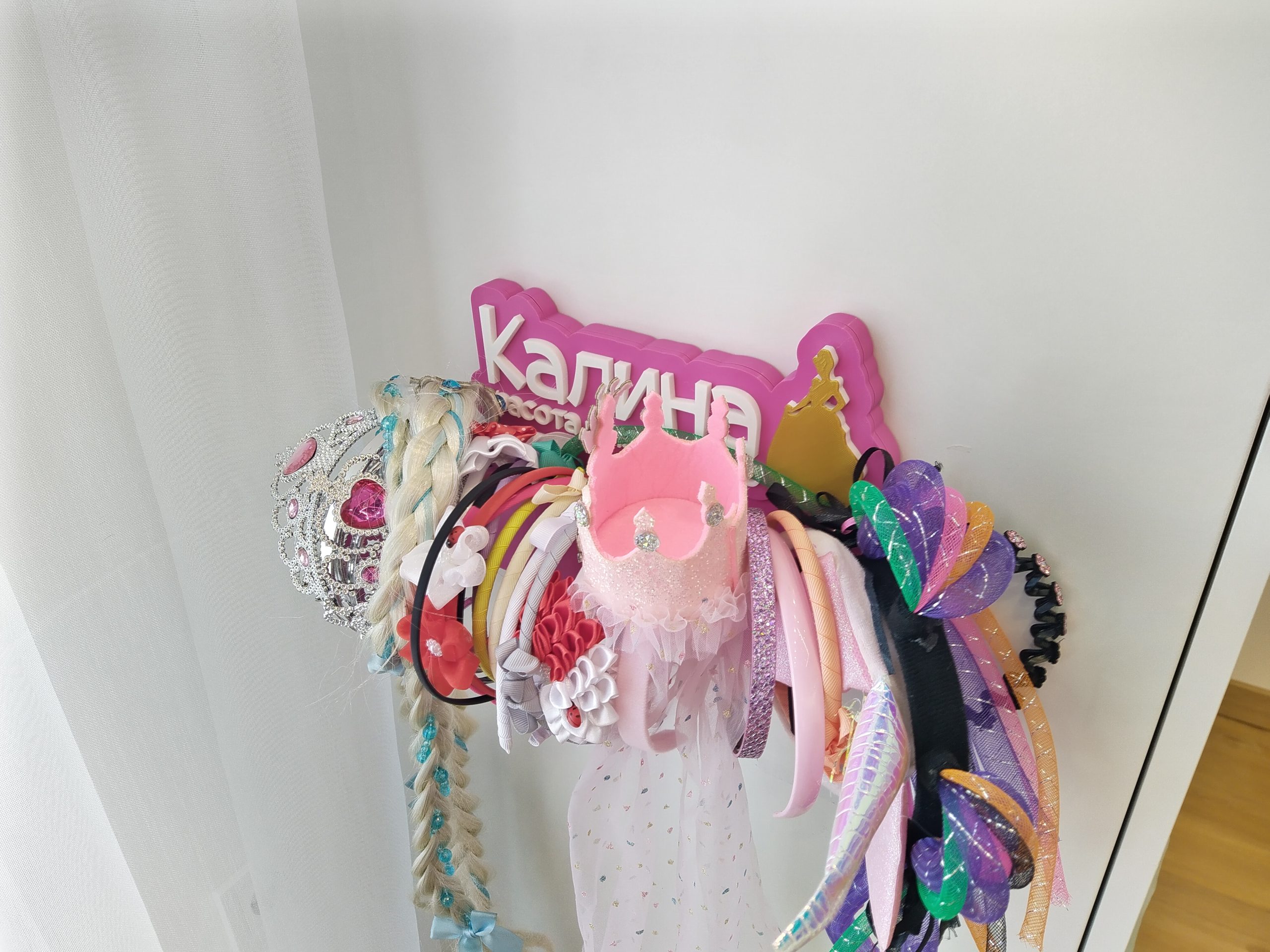 С тази закачалка ще можете да видите всичките си диадеми на едно място, което спомага за лесно подбиране на най-подходящата за тоалета. Всяка закачалка се изработва по индивидуална поръчка и може да бъде персонализирана с име и/или послание с илюстрация.
