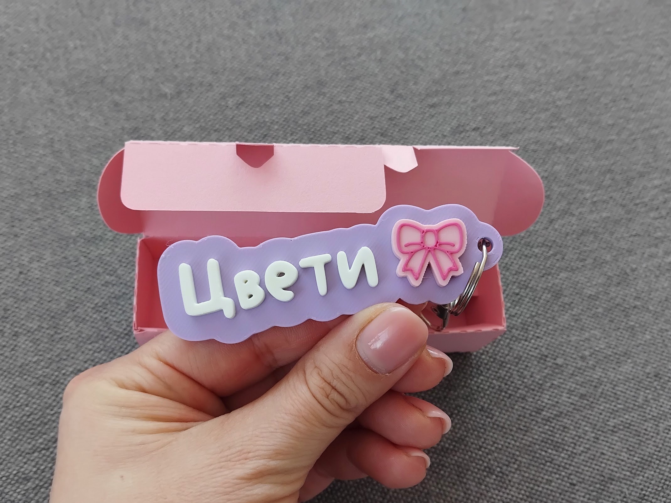 Върху ключодържателя можем да изпишем име или текст по ваш избор – това го прави идеален за подарък, който има личен и специален заряд. Съчетанието от текст и емоджи позволява да създадете нещо уникално, което ще бъде ценено и ще придобие специално значение за получателя.