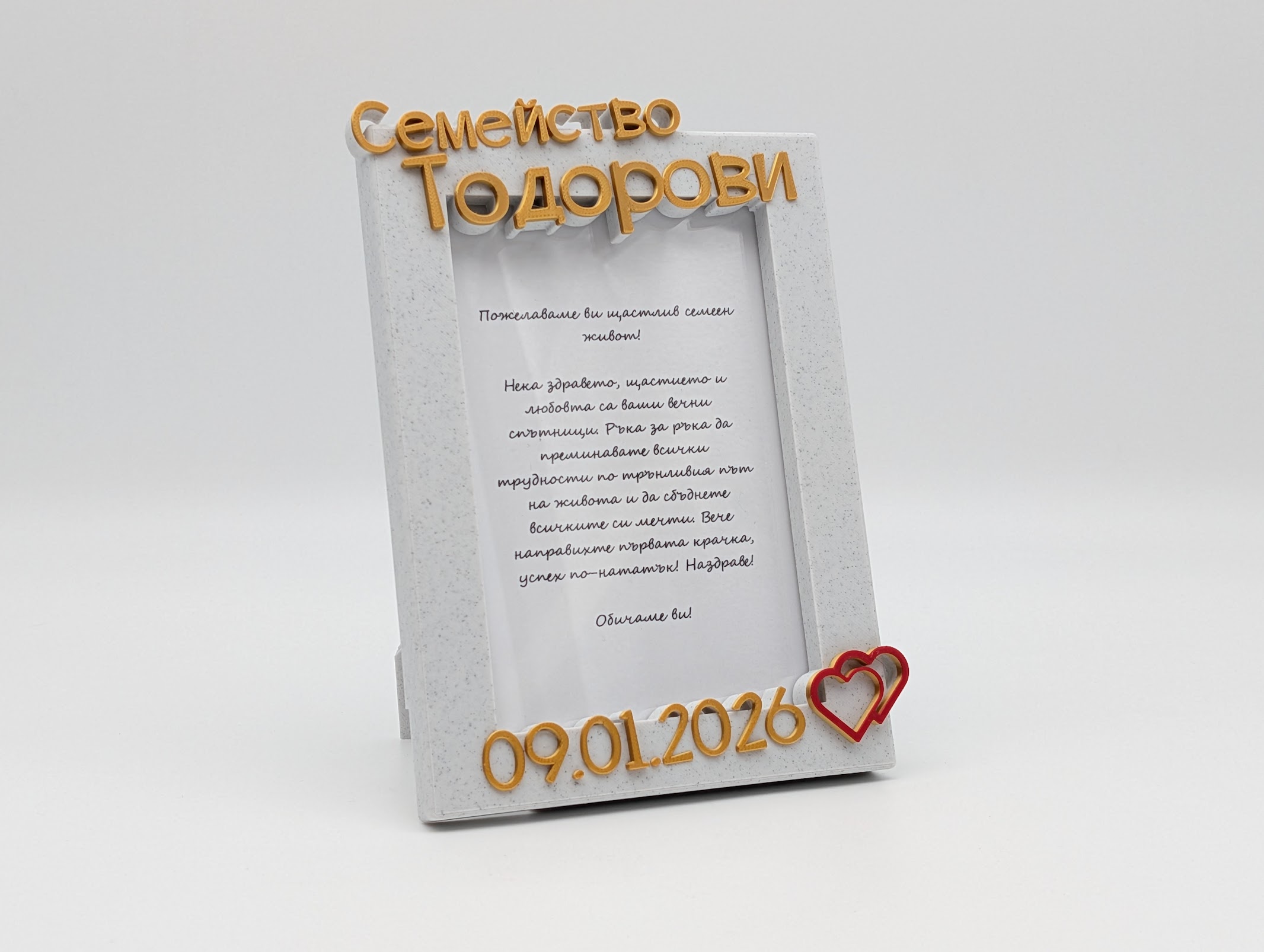 Персонализирана рамка за снимка с пожелание е идеален подарък за рожден ден, годишнина, кръщене или друг семеен празник. Изпратете ни снимка и желан надпис и ние ще се погрижим за останалото!