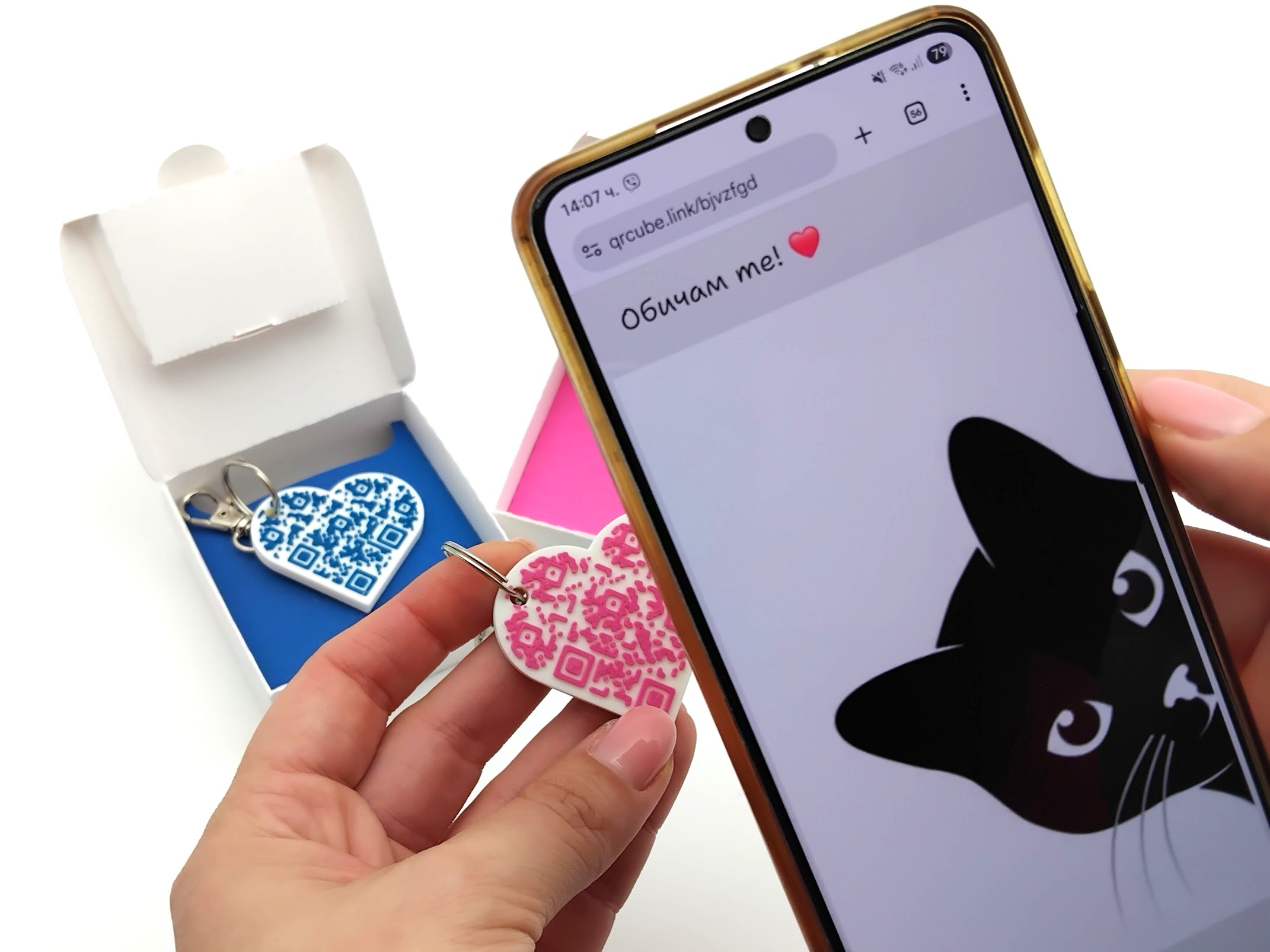 Ключодържател с QR код със закодирано послание или бележка. Може да носи информация за собственика, удобно, в случай на загубване. А защо не романтичен подарък със закодирано персонализирано послание.